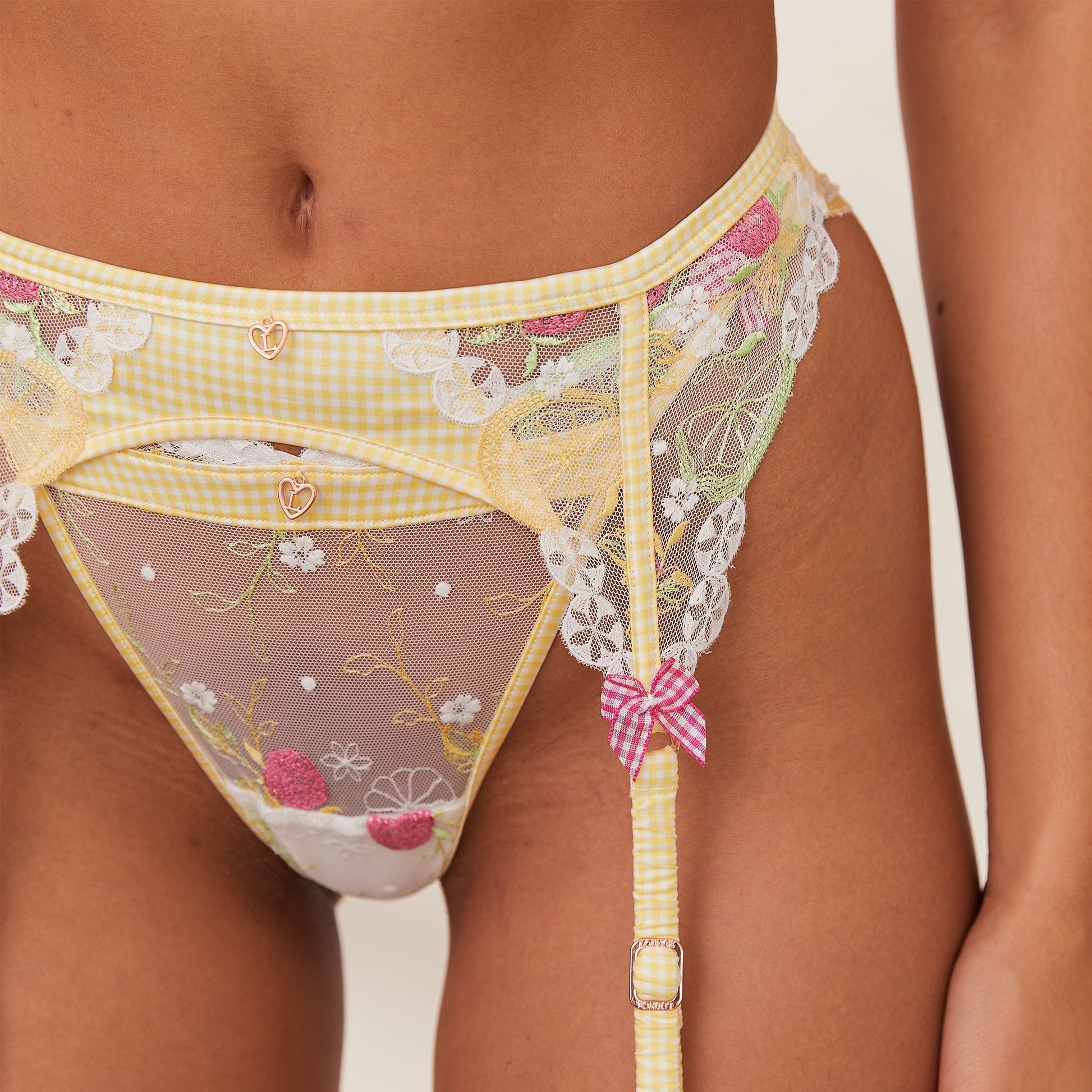 - Decorative picot elastics throughout