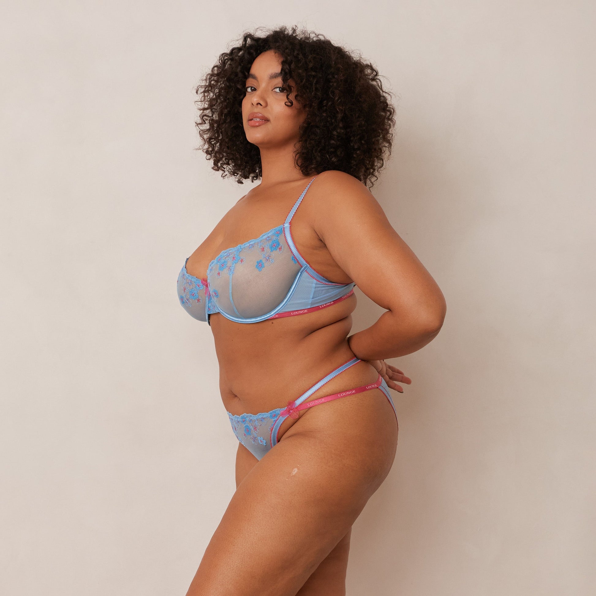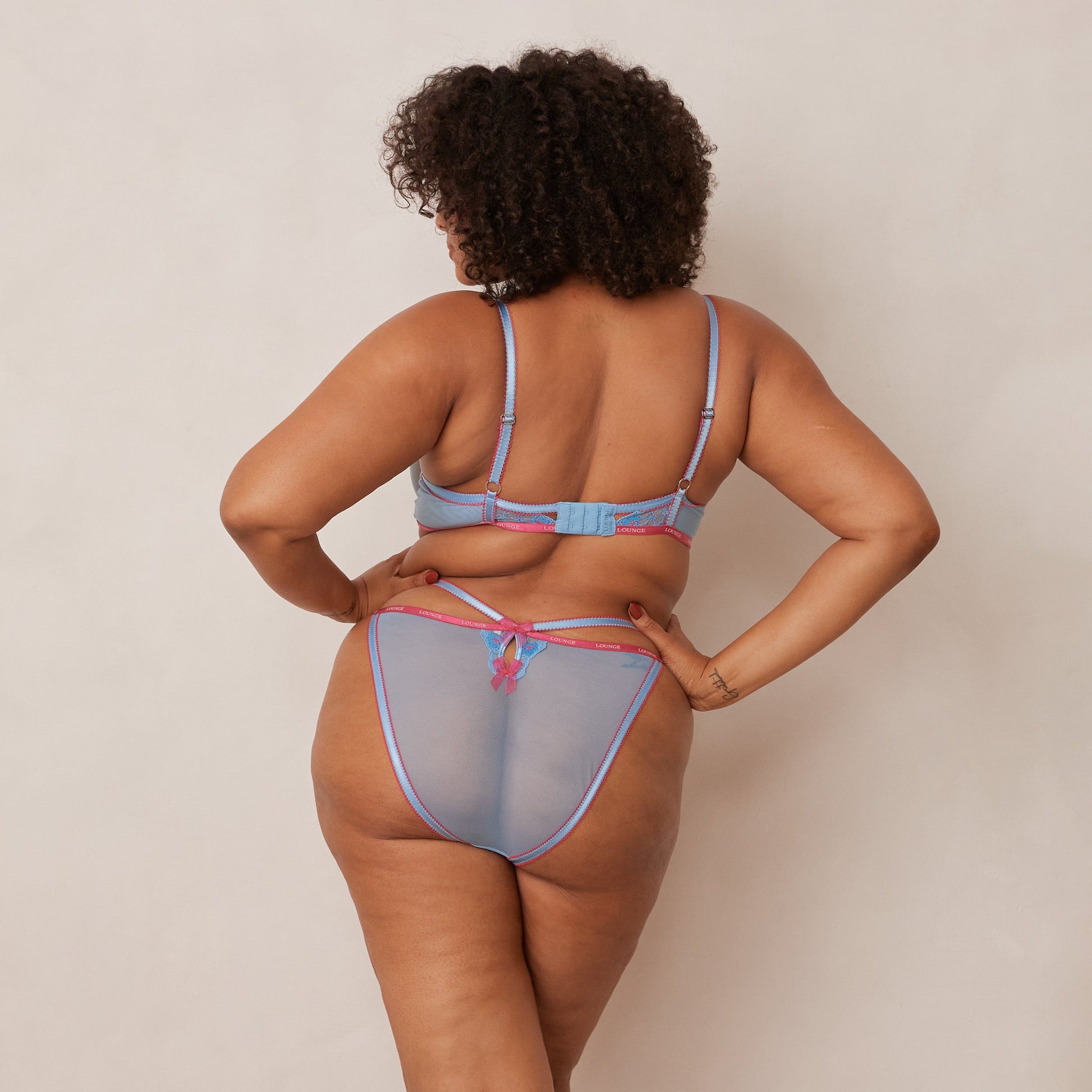 - Decorative picot elastics throughout