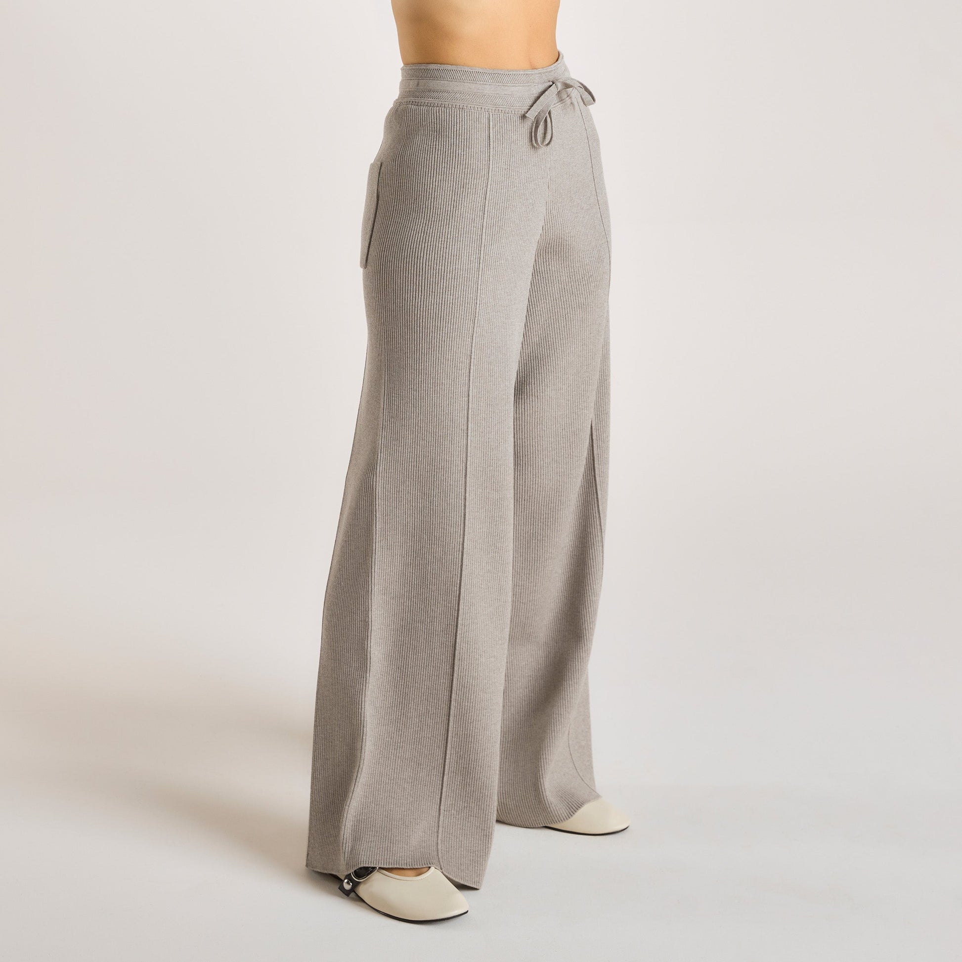 Wide Leg Knitted Pants - Warm Grey
