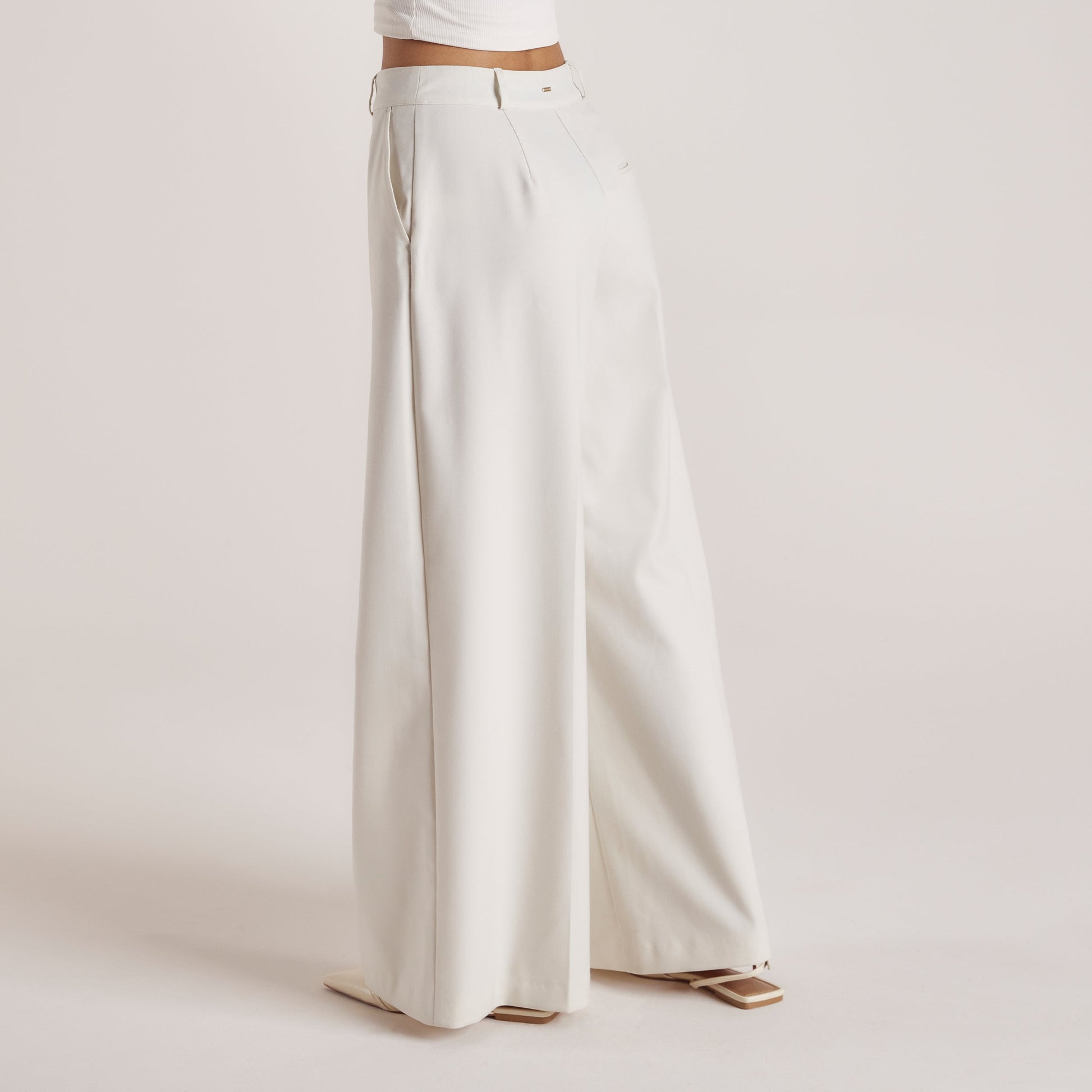 Wide-Leg Tailored Pants - Cream
